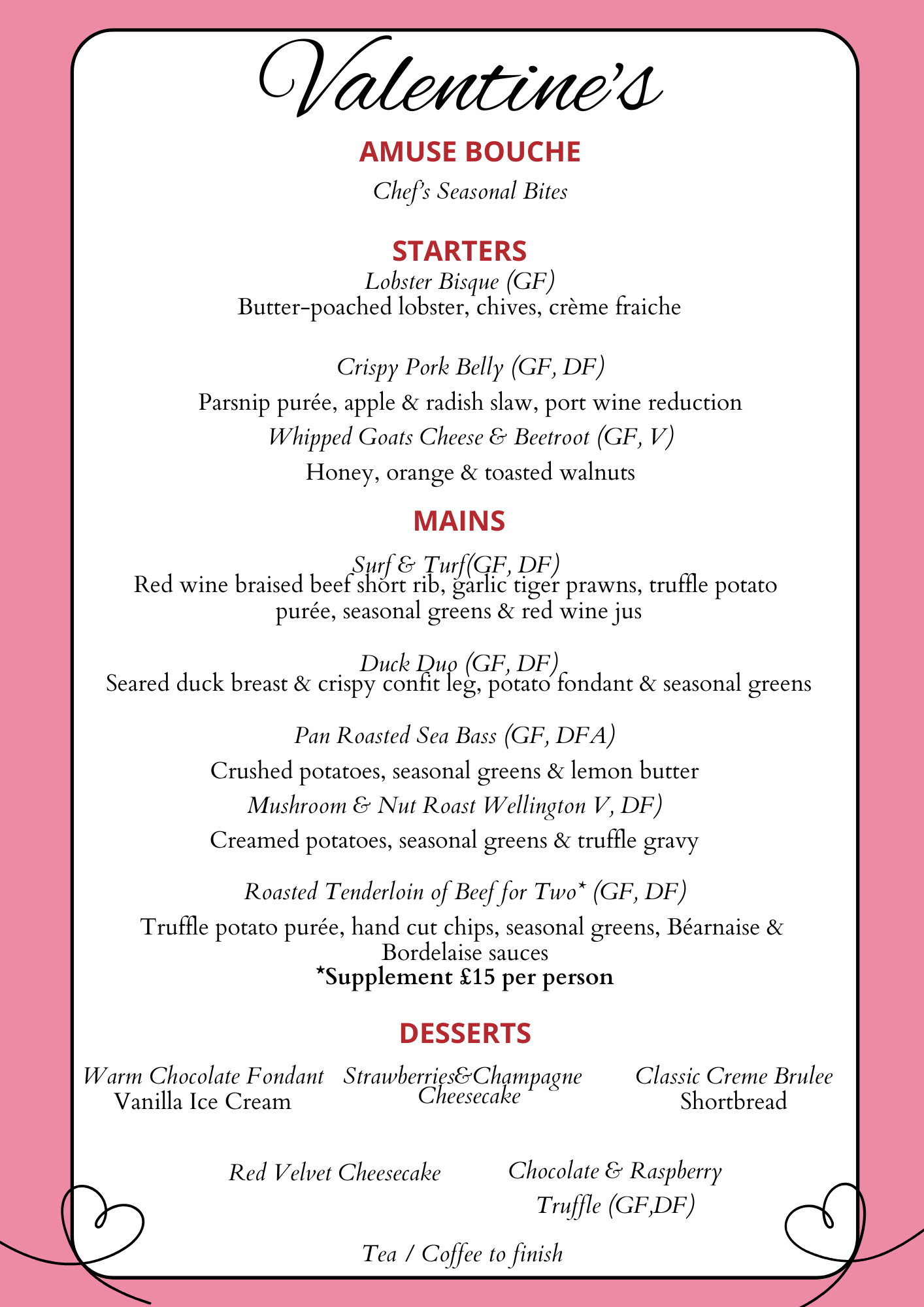 Savour 4-courses in our Oak Room Restaurant and Orangery, including our famous Dainton desserts, then finish the night with a tea or coffee. It's the perfect way to celebrate with your loved one, friends or family!